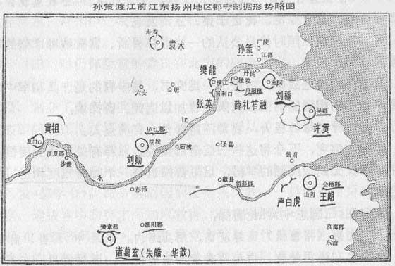 孙策渡江前江东扬州地区郡守割据形势略图