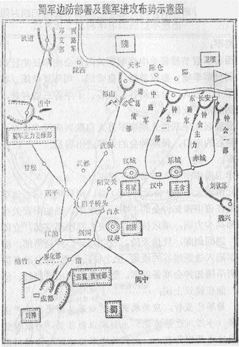 蜀军边防部署及魏军进攻布势示意图