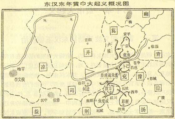 东汉末年政治腐败,统治阶级内部出现外戚和宦官之间争权夺位的斗争,相互轮番擅权,同时更加残酷地剥削压迫人民,皇族地主豪强强占土地,使之出现“馆舍布于州郡,田亩连于方国。”对人民加重征收赋税,加之旱灾,水灾连年发生,致使广大农民生活贫困,倾家荡产,“流离沟壑,嫁妻卖子”,到处出现“地广而不得耕,民矢而无所食”的凄凉景象。劳动人民被逼得走投无路只好举起义旗,起来造反。公元184年,冀州农民在张角领导下首先起义,接着颍川和南阳等地农民起来响应,“旬日之间,天下响应,京师震动。”最后各地农民起义军在东汉朝廷和地方豪强武装的镇压下告败了。