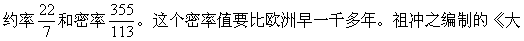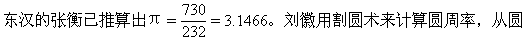 内接正六边形开始,增加到内接正192边形,推算出л=3.1416,把圆周率求到小数点后第四位。 南朝宋时的大数学家祖冲之进一步求出圆周率π的值在3.1415926和3.1415927两个数值之间,把圆周率求到小数点后第七位。他并提出了π的