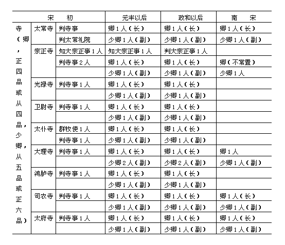 〔附注〕:本表据《宋史·百官志》制。