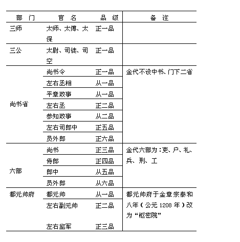 (一)金代中央各主要部门的主要职官