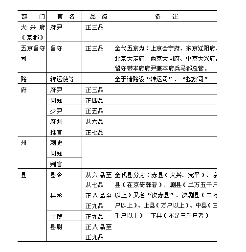 (二)金代地方各主要部门的主要职官
