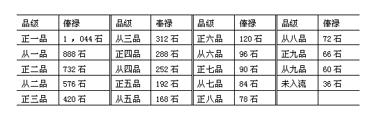注:此表据《明史·职官表》制。 附表三:明代文武官俸禄简表