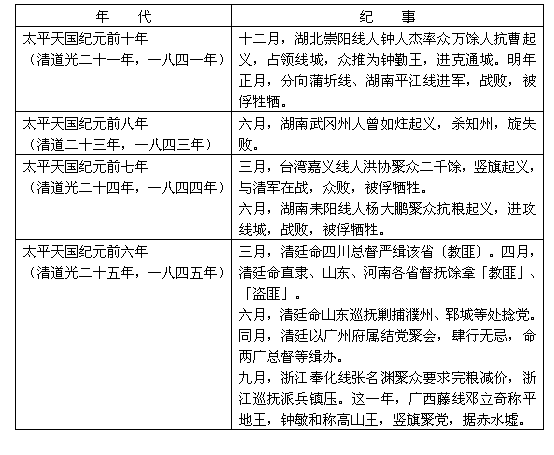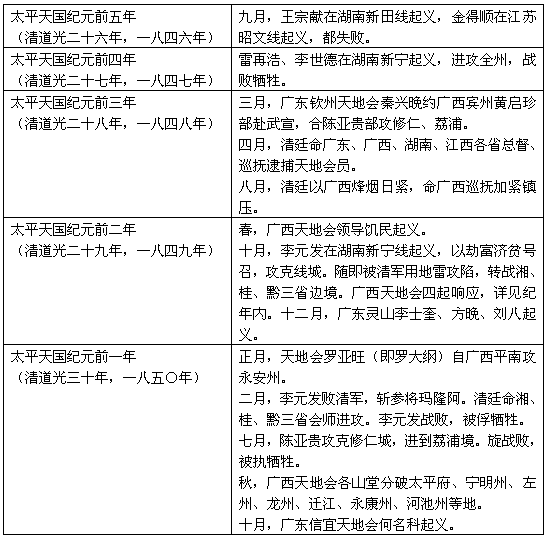 从清初康熙年间起,秘密会社就潜谋倒清。乾隆末年,白莲教领导农民在北方起义,大战经八年,不幸失败,势力浸衰。而天地会(又名三合会)却在南方一天比一天兴盛,到了道光末年,清朝统治愈益贪歼,民不聊生,就在湖、湘、粤、桂、台湾等省起义。天地会由于「山堂分峙,不相统一」,「谁有交通,不相节制」,故起义谁众,指挥不统一,致被清朝各个击破,十九世纪中页中国农民大起义的领导地位逐归于太平天国[一]。但是,它先驱的功劳,却是不可泯没的。