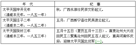 表三 太平天国史卷五 各族人民起义表