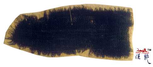.石器时代良渚文化,残绸片,原称残绢片,(距今约4700年),家蚕丝织品,呈黄褐色。