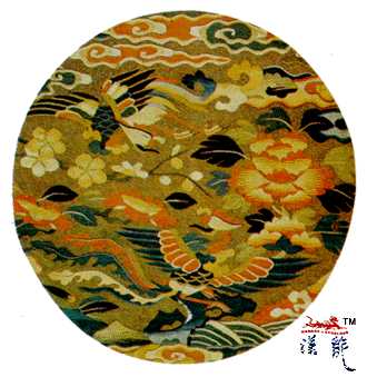 地缂丝鸾凤牡丹纹圆补