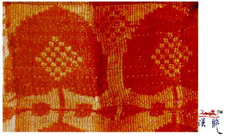 纹锦 织绵 北朝 1959年新疆吐鲁番阿斯塔那北区303号墓出土,长20厘米,宽6.5厘米, 新疆维吾尔自治区博物馆藏。