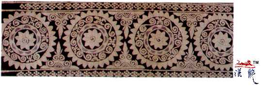 依族蜡染花边 蜡染 清 布长2.9厘米,宽9.5厘米,中央民族学院民族研究所文物室藏。