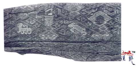 国 狩猎纹绦,幅宽6.8厘米,1982年湖北江陵马山1号楚墓出土,现藏荆州博物馆。