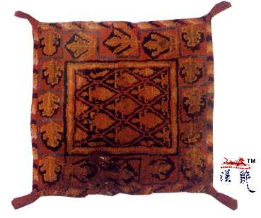 汉 树叶纹缂毛鞍毯,长76厘米,宽74厘米,