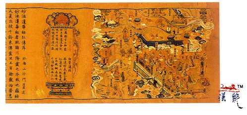 .李德廉刺绣妙法莲华经,经卷绫本,通染淡青色。纵44.1厘米,横1953.3厘米,
