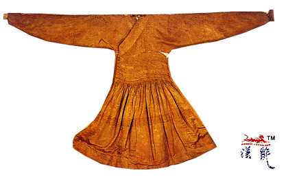 窄袖,束腰,下摆作裙式。1971年山东