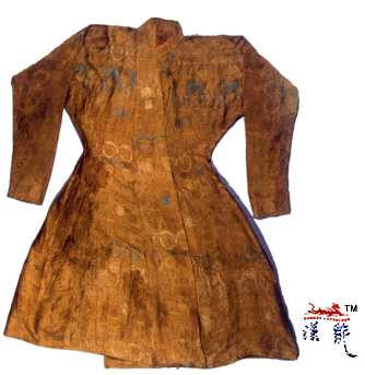 宽88厘米,交领、右衽、直裾式窄袖、束