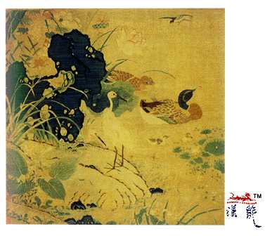 .宋 朱克柔缂丝莲塘乳鸭图,
