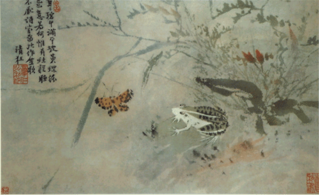 《青蛙草蝶图》