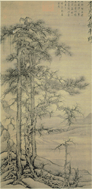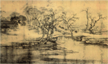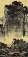 许道宁(约970-1052),北宋著名山水画家,长安(今陕西西安)人。性情狂放不羁,嗜酒如命。工画山水。初在汴京(今河南开封)端门外卖药,当众挥毫,随药送画始得画名。他擅画林木及野水平远之景,山水中多点缀渔樵行旅等山野生活,颇有特点。