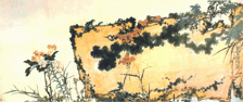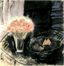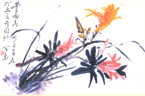 陈半丁(1877-1970),字半丁,一作半痴,又字静山,浙江绍兴人,居于北京,曾与齐白石同在国立北平艺术专科学校任教多年,也同样以花卉见长。他的技法取法于海上画派任伯年的居多,四五十岁时艺术已进入纯熟的阶段。《花鸟》是陈半丁40年代的代表作品,作品趣味清新自然、生动活泼、总体格局疏朗,格调雅致,可以看出海上画派的风格。他的主要代表作还有《石榴图》。