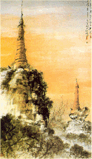 张大千(1899-1983),原名正权,又名爰、季爰,字大千,别号大千居士,四川内江人。20岁后拜上海著名书画家曾熙、李瑞清为师,沉浸于古代书画的研习中,对石涛、八大山人临仿尤深。20世纪30年代即与齐白石齐名,并称“南张北齐”。张大千对上下千年的传统绘画,包括南北二宋,文人卷轴,众工画壁,无不融会贯通。晚年流寓海外,旅居阿根迁、巴西、美国,最后定居台湾。他擅画山水、花卉、人物,尤擅写荷花,独树一帜。他的画风工写结合,重彩与水墨融为一体,尤其在后期,泼墨写泼彩并用,开创新风格。