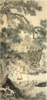 周臣,字舜卿,号东村,生卒年不详,江苏吴县人,山水人物力追宋人,尤得李唐神髓,在艺术成就上被认为可与戴进并肩。吴门四家中的唐寅、仇英都出自他的门下。所作《山斋客至图》、《春泉小隐图》为传世精品。