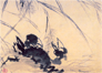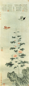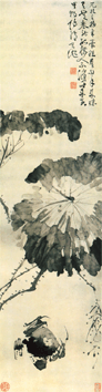 在明代水墨写意花卉画家中,革新精神最强、最为突出的当数徐渭。徐渭(1521-1593),字文长,号天池山人,又号青藤道士,山阴(今浙江绍兴)人,徐渭绘画的成就主要是在水墨大写意花鸟画方面,他发挥了文人画中的以笔墨抒情写意的传统,一改吴门画派花鸟画自然秀润、恬静优雅的格调,形成大胆泼辣、乱头粗服的画风,并结合题诗和苍劲奔放的书法,体现他倔强不驯的个性。