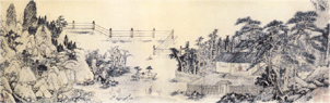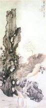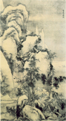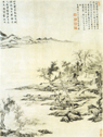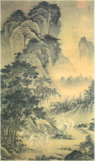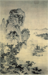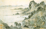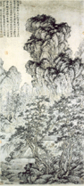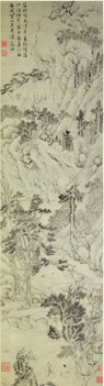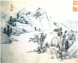董其昌(1555-1636),字玄宰,号思白,松江华亭人,官至南京礼部尚书。董23岁时开始习画山水。他在山水画创作中,还继承前人书画同源的笔墨技法,善于使书法中的“飞白”与绘画中的“泼墨”相结合,来增强景物形象的凹凸、生动。董其昌的巨大影响还在于他的画论。在系统总结文人画历史经验的过程中,他以佛家禅宗分南北为喻,推出了“南北宗论”,尚率真,轻功力,崇士气,斥画工,重笔墨,轻丘壑,尊变化,黜刻画。 |