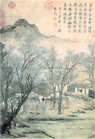 蓝瑛(1585-?)字田叔,号蜨叟。蓝瑛及其弟子们活跃于浙江杭州一带,杭州古称武林,故画史称他们为”武林派”。又因蓝瑛出身于职业画家,又是浙江人,故又称之为“后浙派”。蓝瑛画风早年秀润,晚年苍劲,能融化南北各派之特长。
