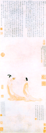 崔子忠(?-1644),字青蚓,山东莱阳人,寓居北京。崔子忠专长人物,师法古人,承晋唐及五代周文矩画法,能自出新意。所作人物,形象古朴,衣纹用铁线描,兼作“战笔”,屈曲转折,劲健有力,具有独创风格。崔子忠的传世作品不多,从仅有的少数作品看,他的题材多是历史和神仙人物故事。