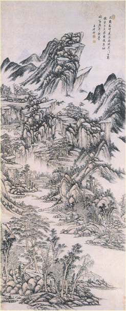清 王原祁 纸本 设色 纵121.5厘米 横45.3厘米 天津艺术博物院藏