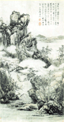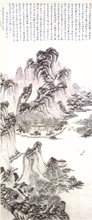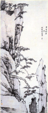髡残(1612-1673),是“清初四僧”(弘仁、朱耷、髡残、石涛)之一,俗姓刘,字介丘,号髡残、白秃、石谿残道人、石道人,武陵(今湖南常德)人。髡残作画,于“元四家”(黄公望、倪瓒、王蒙、吴镇)中的王蒙处得益甚多。髡残善于汲取古法,但更重视师法造化,变前人之法以适自我之意。由此产生了他富有创新的山水画作品。后人认为他的艺术成就能与石涛相伯仲,两人并称为“二石”。