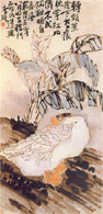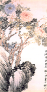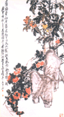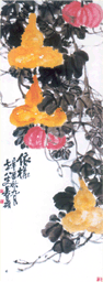 吴昌硕(1844-1927),浙江省安吉县人,出身于书香门第,10岁左右便开始作诗、刻印。吴昌硕喜作梅、竹、松、石、荷花,寓意清高超逸、刚直不阿,继承了文人画的传统。更多的则画新嫩可人的瓜果、笋菜和农家庭院的葫芦架,是其对农家生活深刻体验的流露,也时常将日常生活中习见的牡丹、葡萄、紫藤、夹竹、菊花入画,平易近人。他的传世作品有《梅花图》、《桃实图》、《葫芦图》、《荔枝图》等。