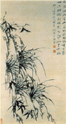 李方膺(1696-1755),字虬仲,号晴江,别号秋池、桑苎翁、白衣山人、柳园,江苏南通人。李方膺善画松石兰竹,笔意恣纵,简逸传神。他的《松石图》苍老浑古,墨气淋漓,有乱头粗服之致。用墨很精彩,浓淡之中层次丰富。
