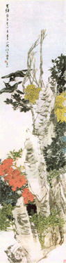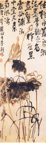 赵之谦(1829-1884),初字益甫,后改字撝叔,号悲盦、无闷,浙江会稽(今绍兴)人。咸丰举人,历任鄱阳、奉新、南昌等县知县。在篆刻、书法方面功力深厚。赵之谦的绘画,以花卉为主,承继陈淳、徐渭、石涛、八 大山人以及“扬州八怪”大写意的传统,并自觉地融入更多书法、金石的意味,下笔沉着雄健,气度超迈。花卉内容除了传统题材外,还喜以前人未及的事物入画;或画福州、温州等地的奇花异卉;或写日常菜蔬,雅俗共赏,自然清新。
