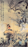 任颐(1840-1895),浙江萧山人,初名润,字小楼,后改字伯年,号次远,别号山阴道人、山阴道上行者,祖籍浙江山阴(今绍兴)。任颐工画人物、花鸟,也擅长山水。他不但向挚友胡远学山水,吸收张熊和王礼的小写意花鸟画技法,甚至还随友人刘德斋去上海徐家汇土山湾图画馆学习过西洋素描速写法,具有扎实的写生造型功力。中西贯通的绘画素养,使他成为晚清画坛最杰出的画家之一,他所开创的清新流畅、雅俗共赏的风格,作为中国画商品化的最佳形式,提供了传统绘画与近现代绘画结合的成功的契机。