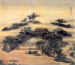 袁耀(?-约1778),字昭道,系袁江之子,画风与袁江相似,亦多作大幅及通景屏,结构错综,视野开阔,工写相兼,水石色并用,风格严谨绚丽。袁耀的精品有胜于袁江者。 |