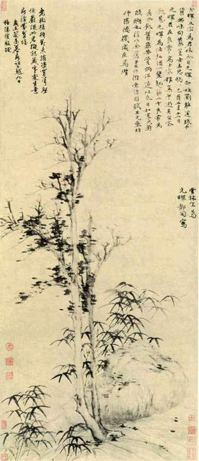 元 倪瓒 纸本 墨笔 纵102.9厘米 横44.2厘米 南京博物馆藏