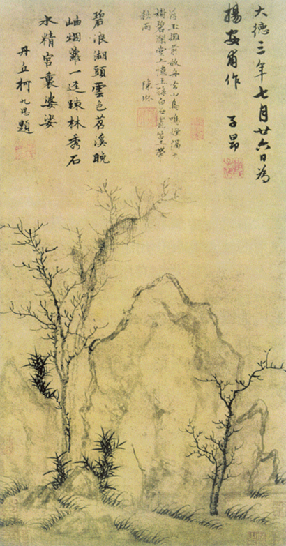 疏林秀石图