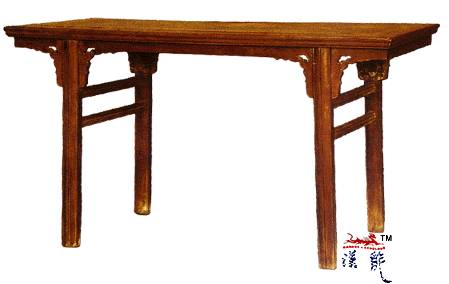 牙头,方腿,以夹头榫嵌夹牙头,牙条后再与桌面榫接,每侧两腿间