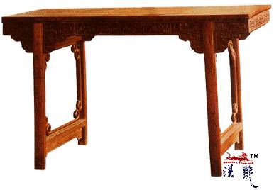 黄花梨夹头榫画案,案面138*75.5厘米,高85厘米,雕花牙条;方腿,