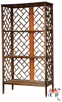 紫檀三面攒接棂格架格,