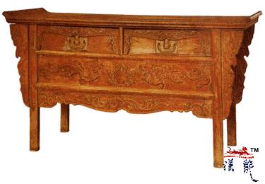 黄花梨龙纹联二橱,橱面160*52厘米,通高90厘米,橱面两端翘头,