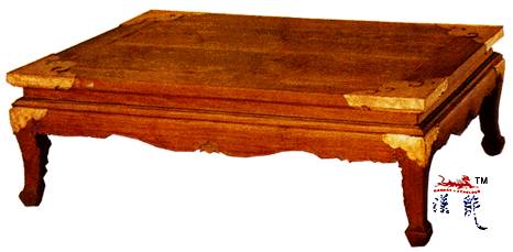 铜包角,束腰,壶门式齐牙条,方腿,肩钉鎏金铜饰件,足端向外兜转成外