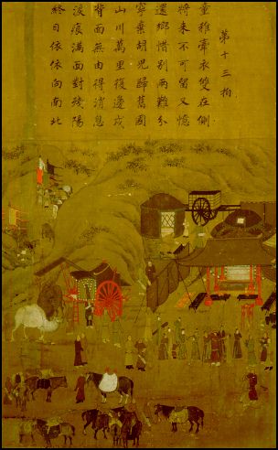 蔡 琰 字 文 姬 , 陈 留 蔡 邕 之 女 也 , 博 学 有 才 辩 又 妙 于 音 律 。 适