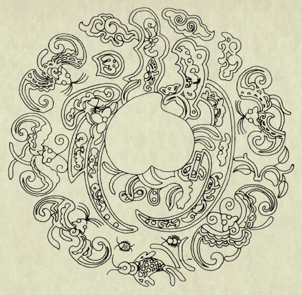 蝙蝠:“蝠”与“福”谐音,人们很早就将蝙蝠作为吉祥物用于装饰艺术中。蝙蝠本来形象并不美,是人们用自己的美好的想象和丰富的联想大胆创造出来的。图安化的蝙蝠动态优美,风度翩翩。桃,寓意为寿,庆寿、祝寿的桃,民间习惯称寿桃,象征长寿。