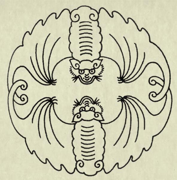 画面上绘有两只蝙蝠相对,也有二童子各抱一只蝙蝠相对而立的。