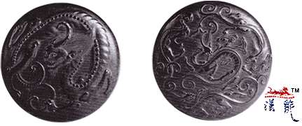 程君房五龙墨,呈饼式,浑然而圆,径9.15厘米,墨锭图形精美,刀法浑圆,