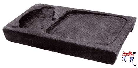 宋 长方歙砚,长方形,抄手式,砚面上方凿菱花形水池,下刻圆角长方形墨池。高