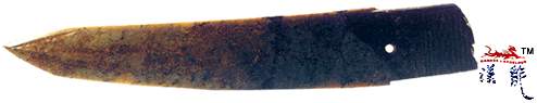 ,玉戈,长57.2厘米,宽9.3厘米,厚1厘米。1951年河南郑州