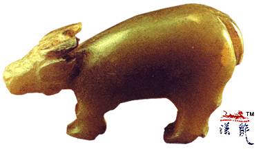 周.玉牛,青色,有白斑,
